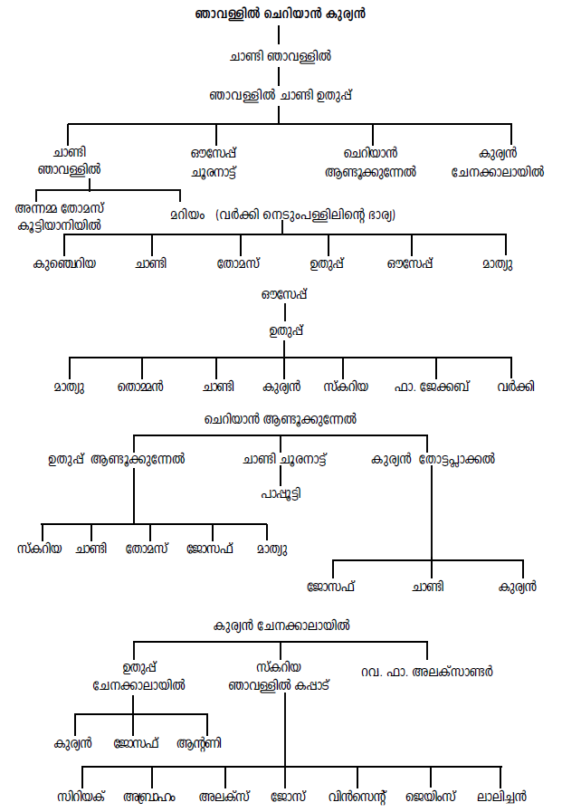 മൈലാടൂർ താമസിച്ചിരുന്ന ചെറിയാൻ കുര്യന്റെ മൂന്നാമത്തെ മകൻ ചെറിയാൻ കുര്യൻ കട്ടക്കയത്തിൽ ചാണ്ടി മാപ്പിളയുടെ മകൾ മറിയത്തെ വിവാഹം ചെയ്തു. ഞാവള്ളിൽ വന്നു താമസിച്ചു. അദ്ദേ ഹത്തിന്റെ മൂന്നാമത്തെ മകൻ ചാണ്ടി മുട്ടുചിറ മുരിക്കൻ കുടുംബത്തിൽനിന്നും വിവാഹം ചെയ്തു. തറവാട്ടിൽ താമസിച്ചു.