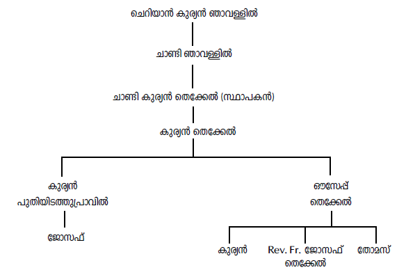 തറവാട്ടിൽ താമസിച്ചിരുന്ന ഞാവള്ളിൽ ചെറിയാൻ കുര്യന്റെ ഏറ്റവും ഇളയ മകൻ ചാണ്ടിയ്ക്ക് അഞ്ച് ആൺമക്കളും രണ്ടു പെൺമക്കളും ഉണ്ടായി. ചാണ്ടിയുടെ ഭാര്യ മുട്ടുചിറ മുരിക്കൽ കുടുംബാംഗമാണ്.